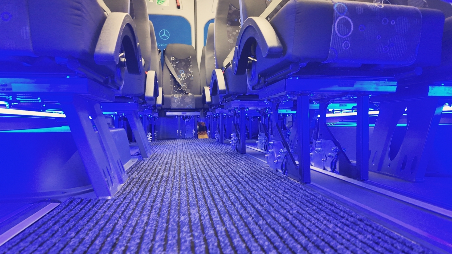 22+1+1 paikkaa korijatko 40 cm tasalattia matkustamon ovi MB vakio-ovi alaslasketulla kynnyksellä matkustamon ovi sähköinen ovenavaaja kuljettajan ovi istuimet kiinteä selkänoja taitettavat käsinojat istuinverhoilu kaksiväriverhoilulla kolmepisteturvavyöt oppaan istuin 9 pikakiinnikeistuinta termostaattiohjattu patterilämmitys lisälämpöpuhallin matkustamossa lämpö- ja äänieristetty matkustamo MB alkuperäinen etuilmastointi Matkustamon ilmastointi 5 kW höyrystin sähköinen ilmaventtiili katossa ( imu ) kattoluukku hattuhyllyt Tummennetut kaksikerroslämpölasit, kokopanoraama XXLMatkustamo